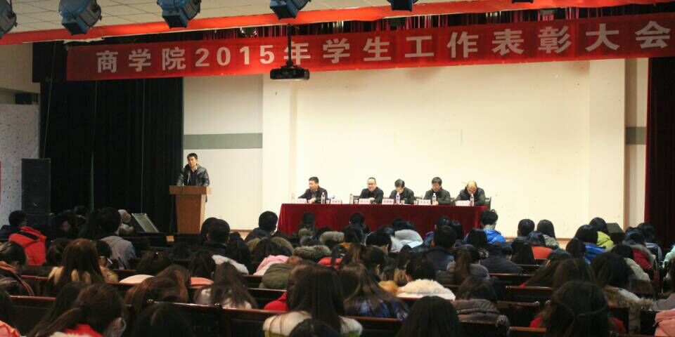 2016年1月7日晚7点,商公司2015年员工工作表彰大会在一餐三多功能演艺厅隆重召开。学工部部长王俊安老师、商公司党政领导魏光民、李尧龙、景根杰、许存兴出席了大会,部分辅导员、员工会干部、各班班长、团支书、2014级全体员工参加了会议,会议由王鹏远主持。