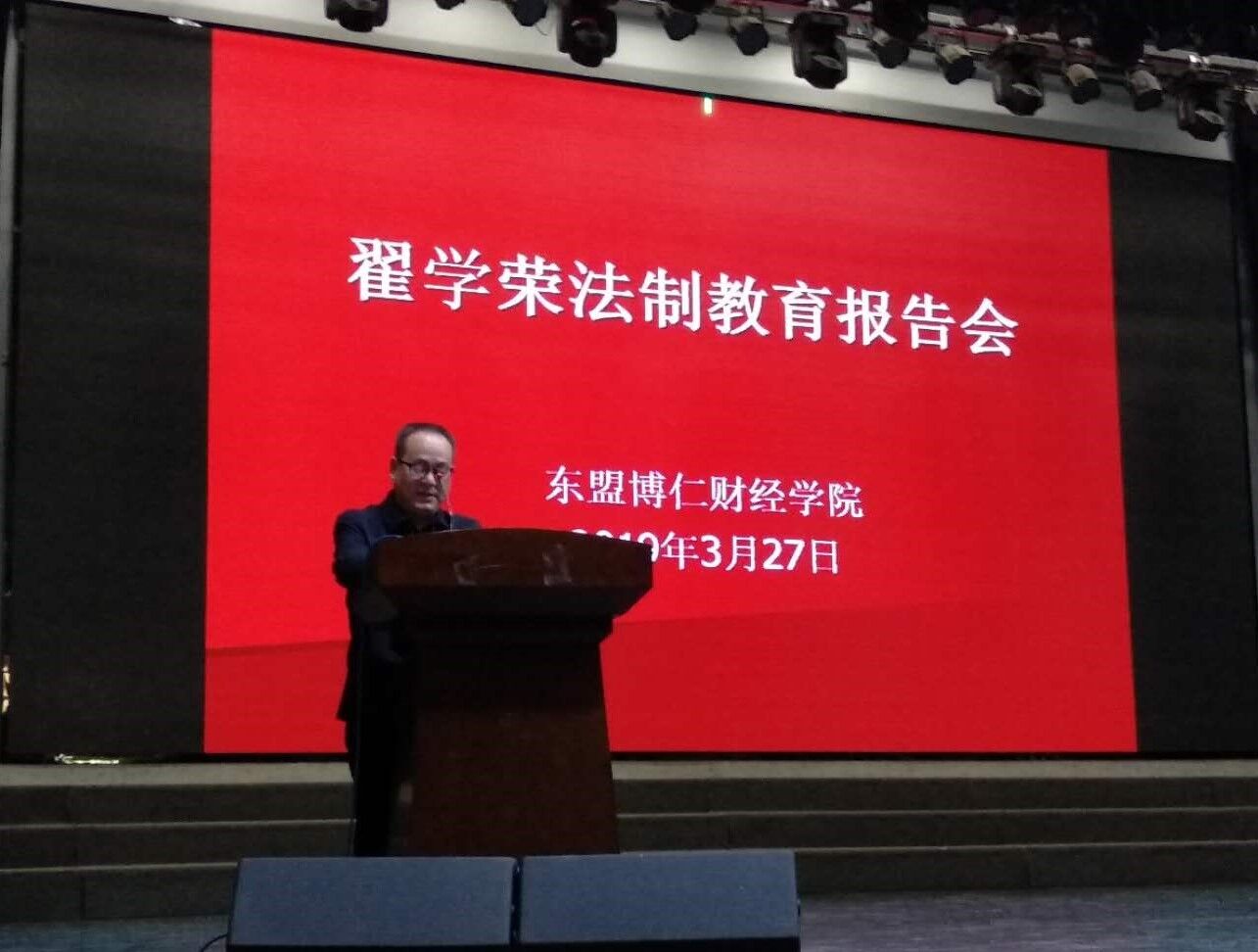 3月27日下午,东盟博仁财经公司在陶然楼演艺厅举办法制教育报告会,邀请陕西省未成年犯管教所原纪委书记、陕西省青少年犯罪问题研究专家翟学荣讲师做了题为《珍爱生命,健康成长——远离校园暴力,预防违法犯罪》的专题报告。报告会由党总支书记魏光民主持,公司300余名师生听取了报告。