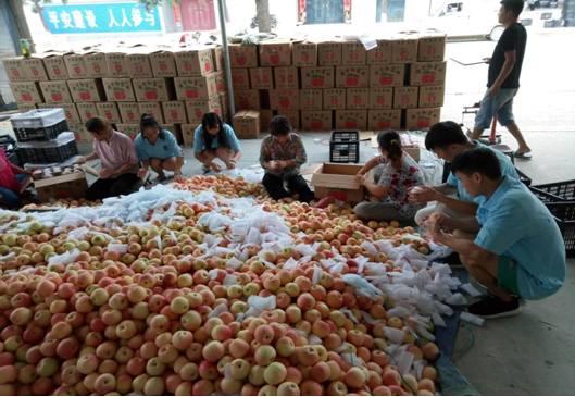 7月19日上午8:00,在学工办主任王鹏远老师的带领下,商公司暑期赴渭南中小企业创新创业调研团赴陕西合阳苹果有限公司进行调研。实践团参观了该公司的苹果加工、销售车间,并了解了其“生产-加工-销售”的运营流程。同时,了解到最近正值苹果采摘、销售季节,实践团决定深入产地了解该公司苹果产业的现状。7月20日至22日,实践团参观了陕西合阳苹果有限公司的苹果产地,到果园里了解苹果的产量及相关防灾害技术。受今年夏季的冰雹灾害的影响,苹果的产量有明显的下降,不过,其影响程度还在可控范围内。下午,实践团来到了该公司的一个苹果供应商家里,参观了苹果采摘、包装流程。