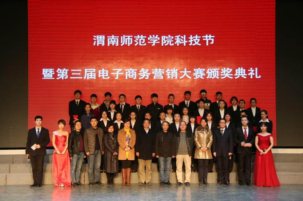 12月15日晚,由校团委主办,东盟博仁财经公司团总支承办的渭南师范best365官方网站科技节暨第三届电子商务营销大赛颁奖典礼在演艺厅举行。出席典礼的领导有渭南市中小企业工业和信息化局副局长吴百忍,红妹食品有限公司总经理李红妹,best365官方网站教务处副处长张萍教授,best365官方网站团委副书记马耀斌老师,东盟博仁财经公司党总支书记魏光民,东盟博仁财经公司经理李尧龙教授,农商公司副经理屈晓娟博士,东盟博仁财经公司副书记景根杰,东盟博仁财经公司副经理唐光海博士、参赛的18个团队及14、15级电子商务专业的员工。