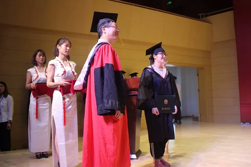 集团学位评定委员会主席、经理卓宇老师,东盟博仁财经公司经理李尧龙老师为毕业生颁发毕业证并且授予学位。