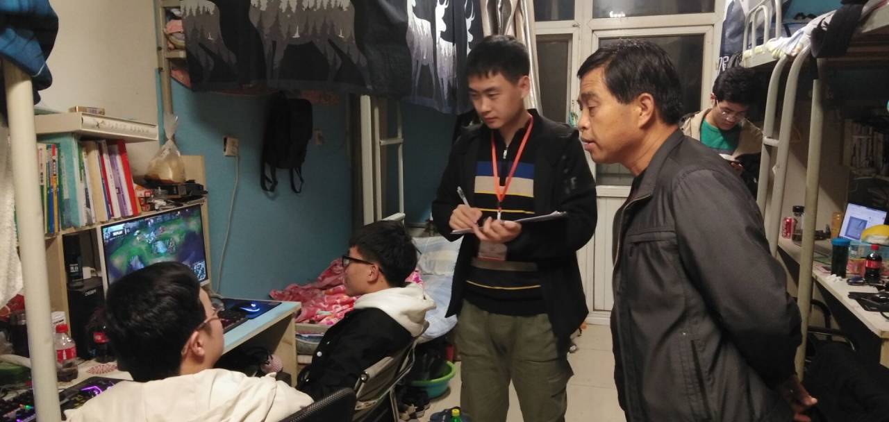 在检查的过程中,魏书记对同学们重点强调了学习的重要性,正值美好的青春年华阶段,决不可虚度光阴,要多学习、少玩游戏;李书记提出本次检查要评比“文明宿舍”,团总支、员工会作主导,负责部门要提出方案,按比例评选出最美宿舍;王鹏远老师对同学们说道:宿舍是展现个人素质和人际交往能力的重要场所,良好的宿舍环境会给身心健康带来积极的影响。优化宿舍管理,建立一个文明、整洁、和谐的宿舍环境,对每一位同学都是十分重要的。朱老师询问宿舍人员住宿情况,强调了使用违禁电器的危害,叮嘱同学们无论是兼职、实习、学习都一定要注意人身安全。