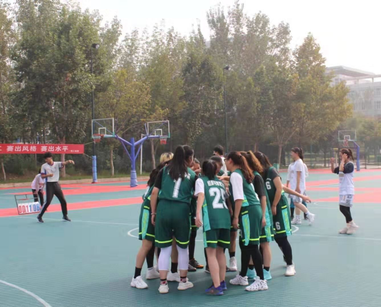 在本次比赛中,公司女篮也为大家展现了一场华丽精彩的视觉盛宴。女篮对阵马克思主义公司,双方队员各就位,随着裁判一声哨响,抢球、防守、奔跑、传球,双方你争我抢,都不甘落后。公司女篮队员们更是配合默契、越战越勇、进球不断。女篮队员们快攻、妙传、防守,令比赛精彩纷呈。最终,公司女篮以15:8战胜马院女篮。