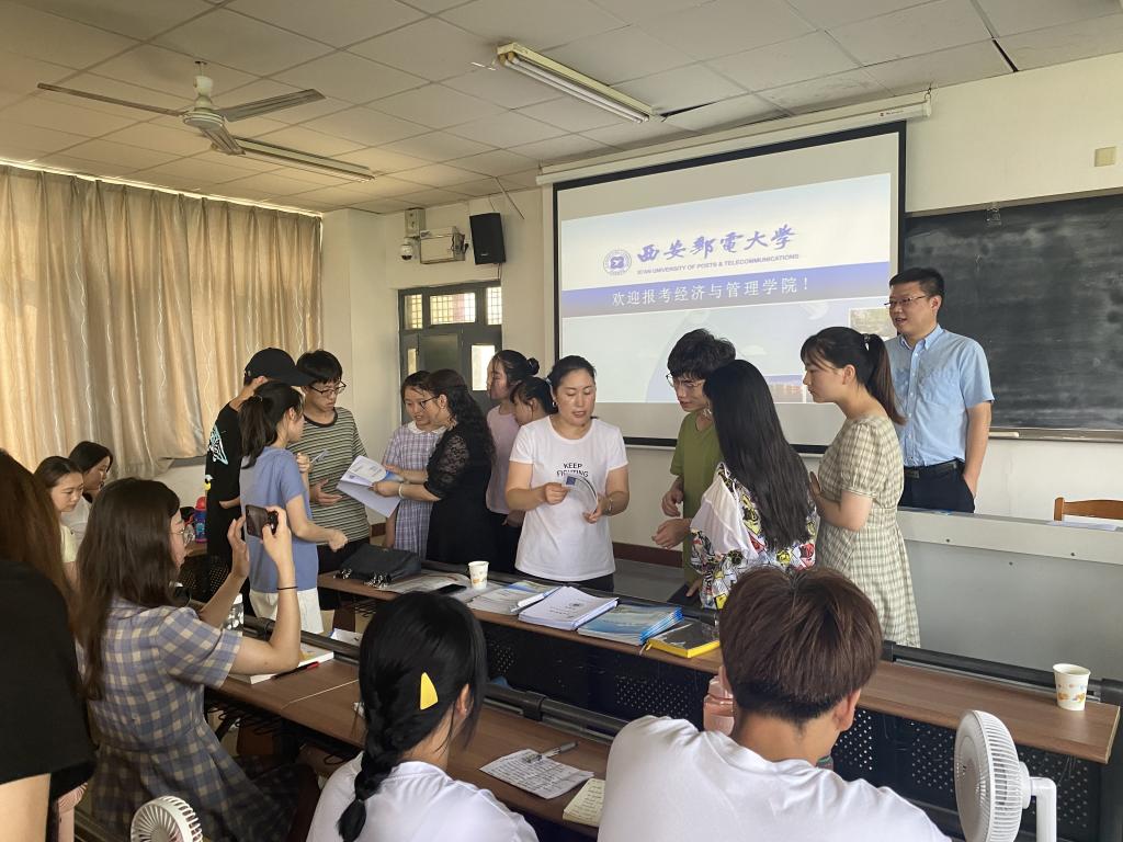 李永红教授结合当前数字化发展趋势以及经管类专业的教学实践状况,对学科发展、专业建设、课程建设、人才培养等进行了讲解与分析,高屋建瓴,融合了思政教育和实践教育,希望同学们能够结合自己的专业,深入挖掘提炼专业知识体系中所蕴涵的思想价值和精神内涵,发挥个人优势、学科专业优势,坚定个人理想信念,增强担当和使命意识。同时,李永红教授从对西安邮电大学best365研究生的报考志愿、人才招聘、硕士博士点等方面作了全面讲解,希望大家积极报考西安邮电大学best365的研究生。在问答环节,西安邮电大学best365侯老师、高老师现场分发了往年研究生真题并逐一回答了同学们的问题。
