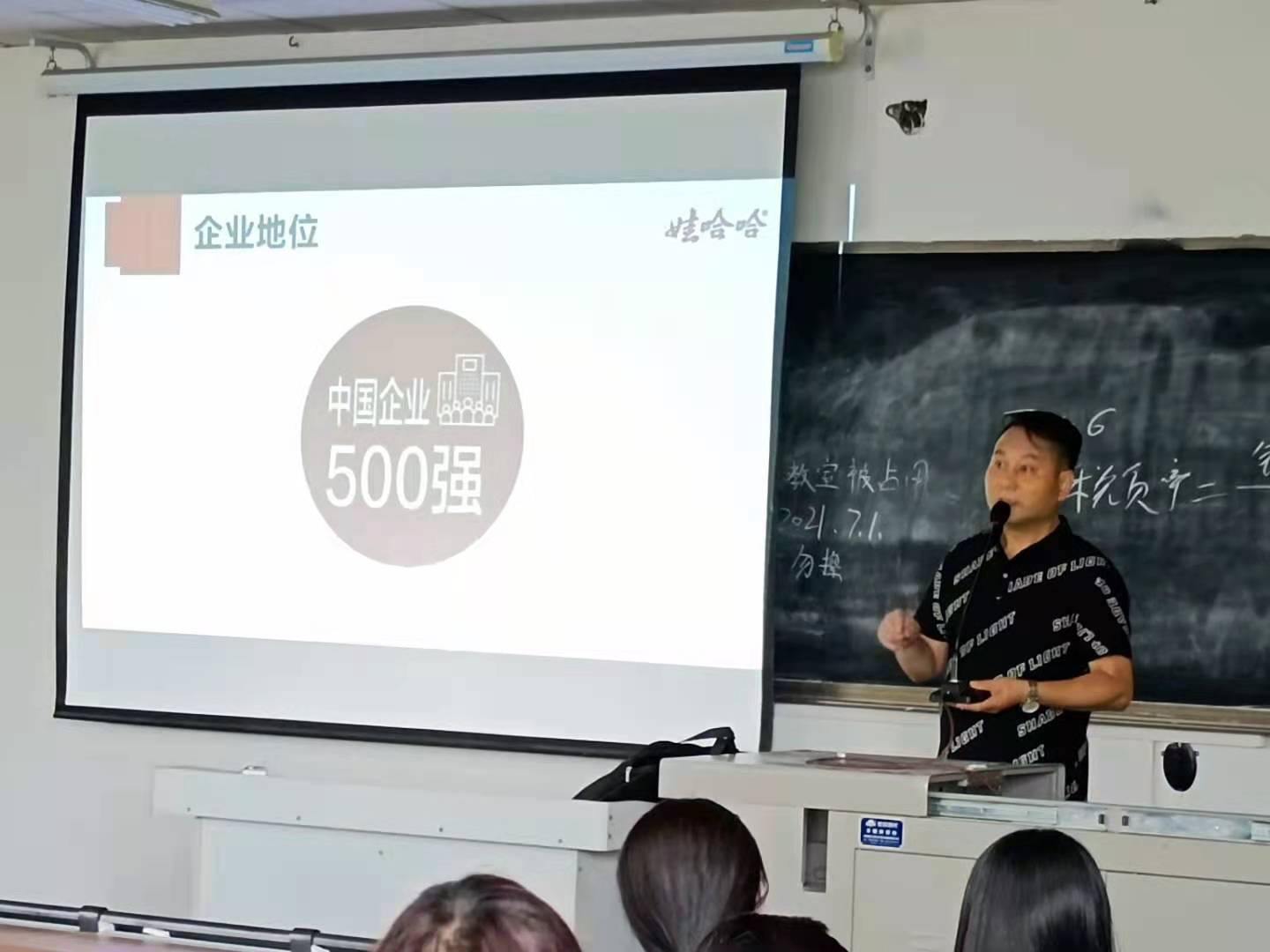 高经理首先将娃哈哈民族品牌做了简要介绍,其次根据娃哈哈集团的市场营销人才需求及营销现状做了简要分析,为建党100周年庆典活动专门为公司营销专业员工打造“热心不止,心存未来”的营销实践专题报告会。报告会主题围绕着企业的三个愿景:即“打造1个民族品牌,实现2个迈进,推动3个转变!”为主线,为公司师生献上增强民族自信的豪华盛典。