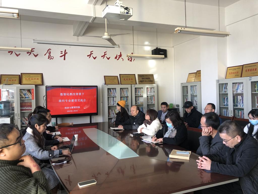 李富荣首先对三位企业家的到来表示欢迎,详细介绍了公司专业建设的基本情况,强调在应用型转型过程中,校企融合是地方院校经管类专业提升应用能力的有效途径。瞿刚就自身经历和企业情况做了详细介绍。张庆兰在会上做了数智化教改背景下商科专业建设的探索报告,她表示,数智化人才成为刚需,这也是商科人才转型升级的探索方向,同时,张庆兰针对经管公司开设的专业涉及到的技术架构和支撑平台进行了详细的介绍。最后,专业教师与企业负责人就建设课程平台和数智化教改进行了讨论与交流。