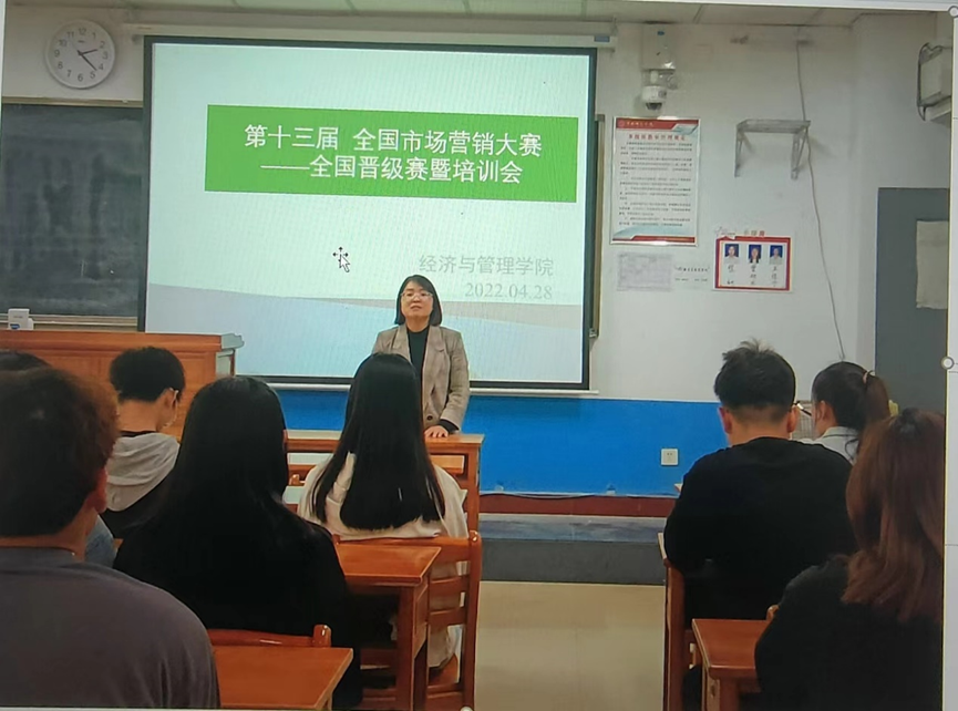 2022年4月28日下午,best365在1521教室召开第十三届全国高校市场营销大赛全国晋级赛动员暨培训会,best365经理李富荣、副经理石党英及各组指导老师参加了此次培训会,会议由市场营销专业负责人黄东梅副教授主持。
