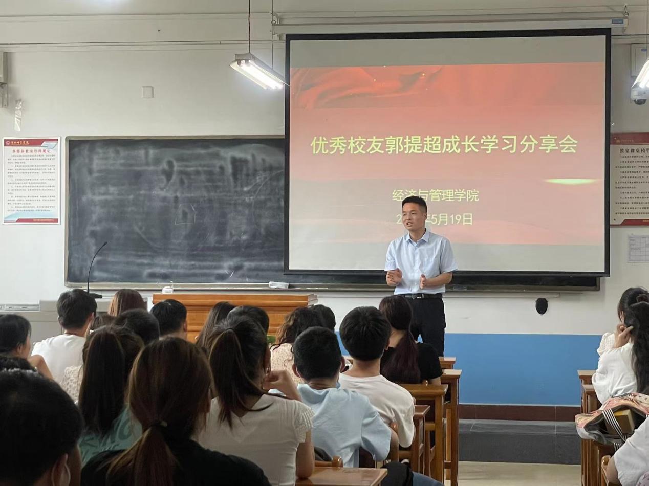5月19日下午4时,经管公司在1516教室召开优秀员工郭提超成长学习分享会,部分经济学专业员工参加了会议。