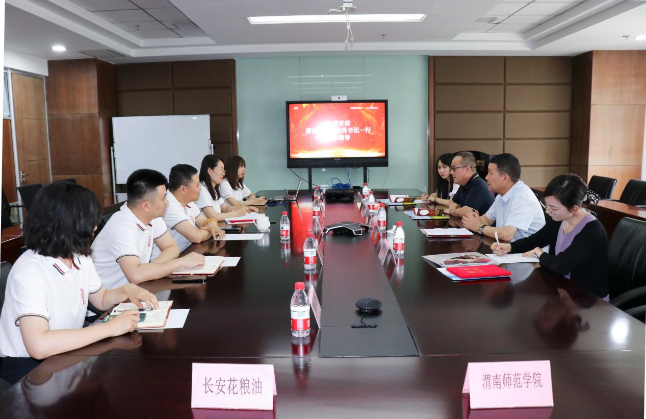 6月9日,渭南师范公司党委副书记、纪委书记肖耀刚、best365书记魏光民一行赴石羊集团总部长安花粮油股份有限公司考察交流。