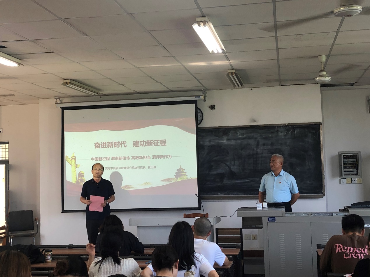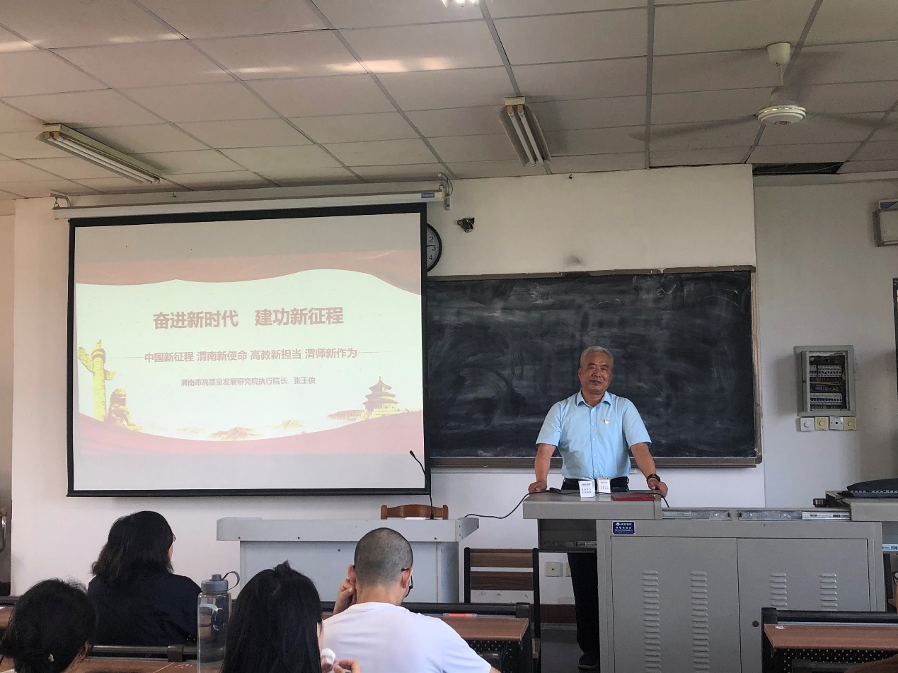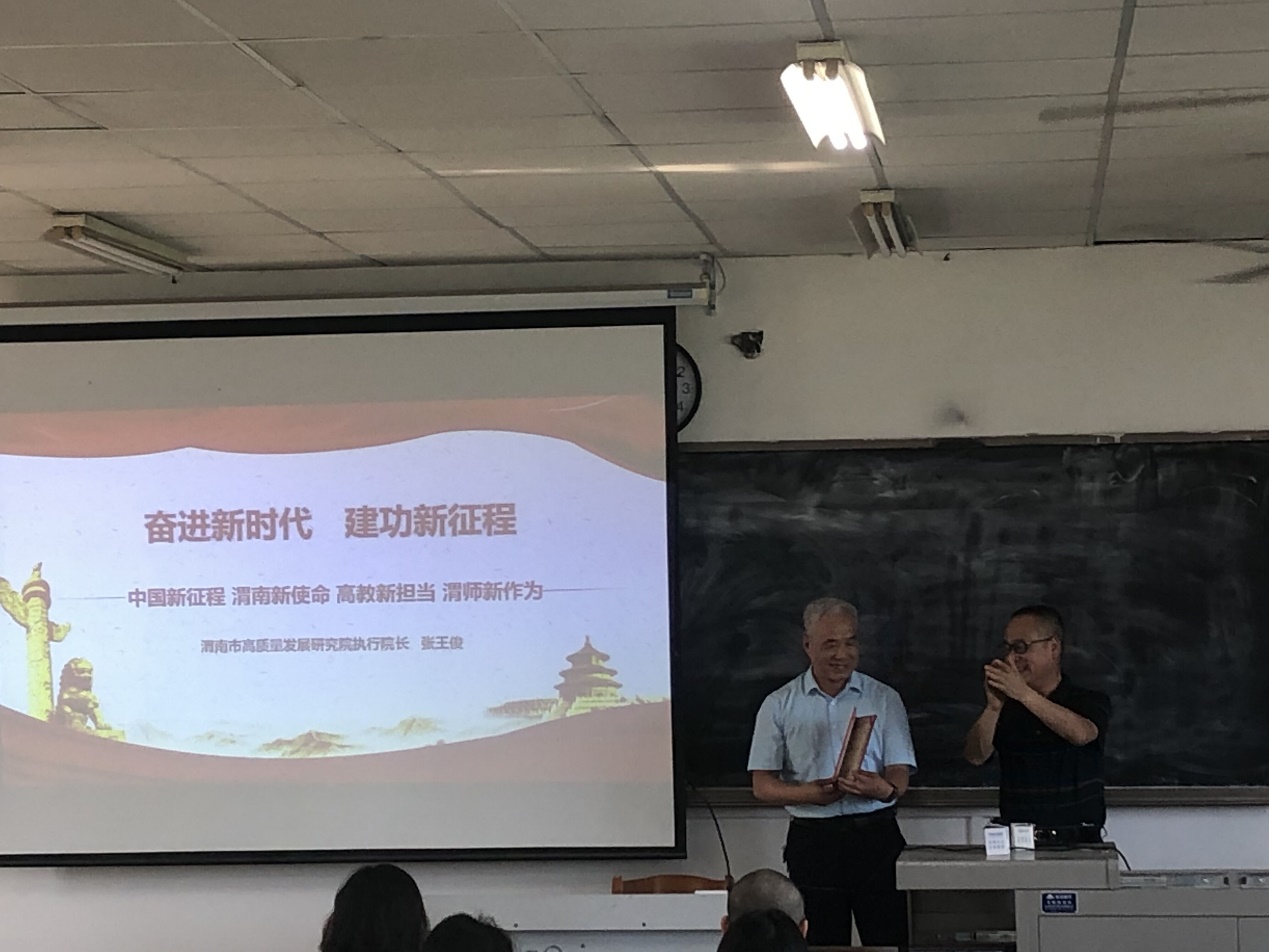6月23日上午,best365邀请渭南市高质量发展研究院执行经理张王俊在1501教室举办主题为《奋进新征程、建功新时代》的讲座。best365师生100余人参加讲座会,讲座会由best365经理李富荣主持。