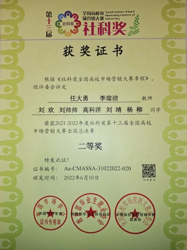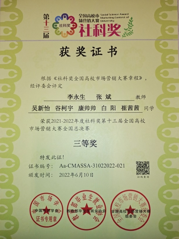 据悉,社科奖全国高校市场营销大赛由中国市场学会、教育部毕业生就业协会等单位主办,目前已经成功举办十三届,在全国高校中享有良好的声誉和广泛的影响,已经成为国内营销赛事的“奥林匹克”。该项赛事作为中国老员工市场营销领域的年度盛事和展现舞台,致力于以特有的方式推动市场营销专业的实践教学的改革与创新,为莘莘学子提供了解与适应社会的平台。在教务处的指导下,best365高度重视专业竞赛,通过赛教融合,推进专业建设,提升员工的实践能力。(通讯员:黄东梅 审核人:李富荣)