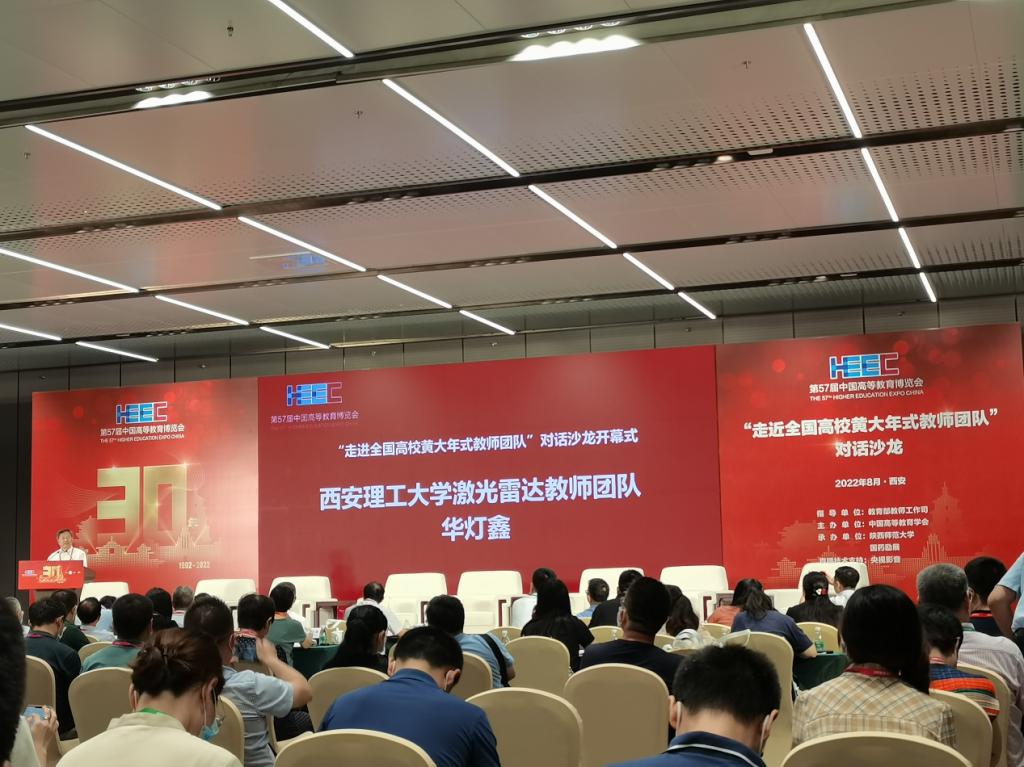 在展厅,与会教师参观了数字化教学平台、沉浸式体验课堂、多功能教学讲台等多种数字化教学设备,重点参加了中国高等教育学会主办的“走进全国高校黄大年式教师团队”对话沙龙,聆听了东北师范大学中国农村教育发展教师团队、西安理工大学激光雷达教师团队、陕西师范大学中国古代文学教师团队关于其在教学科研方面的成果与贡献,通过对话沙龙,与会教师真切感受到黄大年式教师团队既重教学,又重科研,立志做大先生,潜心做大学问的优秀品质。