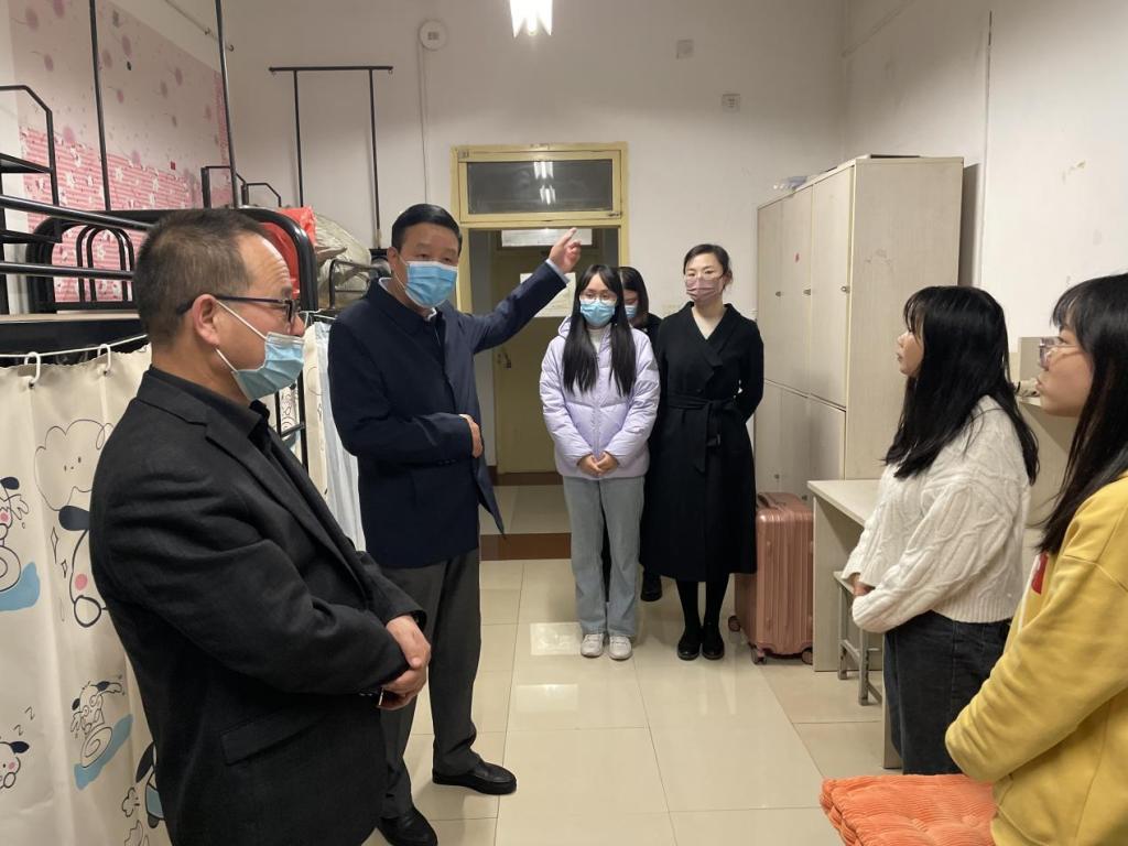 10月14日晚,公司党委副书记、纪委书记肖耀刚深入best365包联员工公寓检查指导疫情防控工作,经济与管理公司党总支书记魏光民、党总支副书记李真、公司辅导员参加了检查。