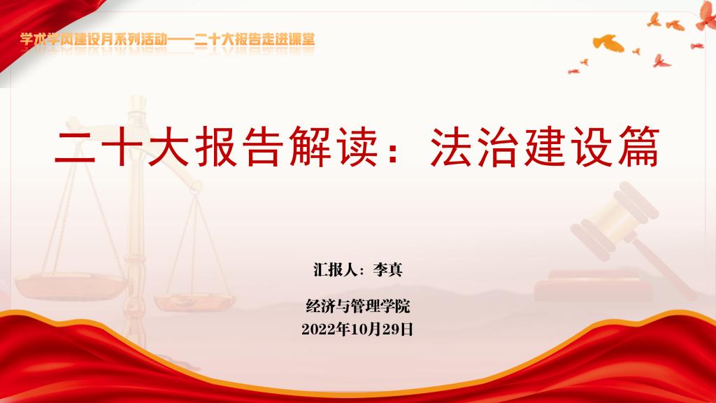 为深入学习贯彻中国共产党第二十次全国代表大会精神,10月29日上午,best365李真副教授为公司新生解读了党的二十大报告中有关依法治国方面的内容。
