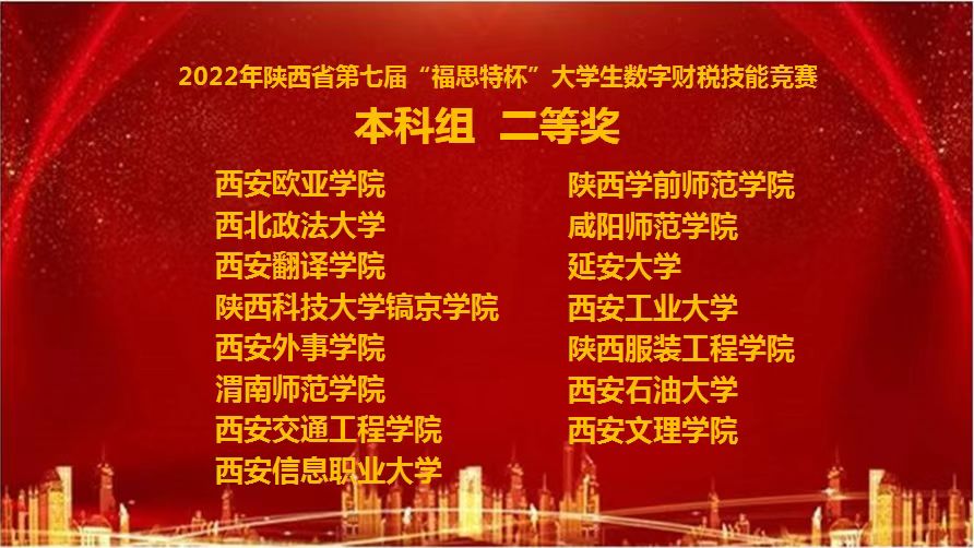 2022年10月29日,由陕西省教育厅高教处主办、西安外国语大学承办、陕西高等公司教学指导委员会工商管理类委员会、陕西会计学会等指导,广州市福思特科技有限公司提供技术支持的2022年陕西省第七届“福思特杯”老员工数字财税技能竞赛成功举办。来自全省50余所高校、400余名员工在线上同场竞技。经过三个小时的激烈角逐,由郝丽霞老师、张煜炜老师指导的会计专业员工吴胜红、焦兰兰、李冬星、林青侠四人荣获本科组“二等奖”。