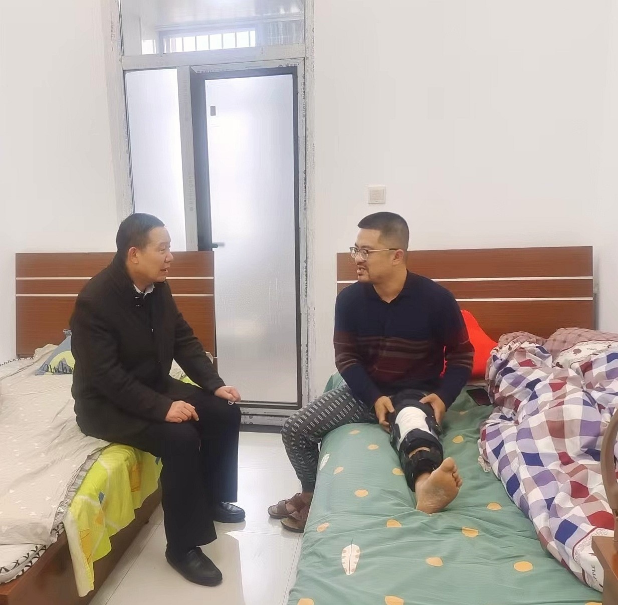 当了解到经管公司辅导员杜炳鋆带伤坚守一线,肖书记给予高度肯定,他指出公司的改革发展稳定离不开全体师生的共同努力,离不开广大辅导员及教职员工的默默付出,杜炳鋆同志在当前疫情防控形势复杂的情况下,毫不退宿,迎难而上,以实际行动展现出了新时代青年辅导员的使命与担当。同时他也叮嘱全体值班辅导员要做好政策宣讲、生活服务、心理疏导等各项员工工作,多到宿舍走走,多与同学聊聊,及时了解员工实际需求,快速高效解决员工关切的问题。公司也将尽力为大家创造一个良好工作环境。(通讯员:刘婉婷,审核人:魏光民)