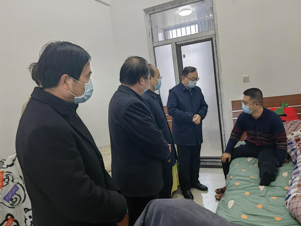 12月4日上午,公司党委副书记袁亮看望、慰问经管公司富平校区在员工公寓楼中值守的辅导员们,视察了解辅导员值班情况和员工生活情况。