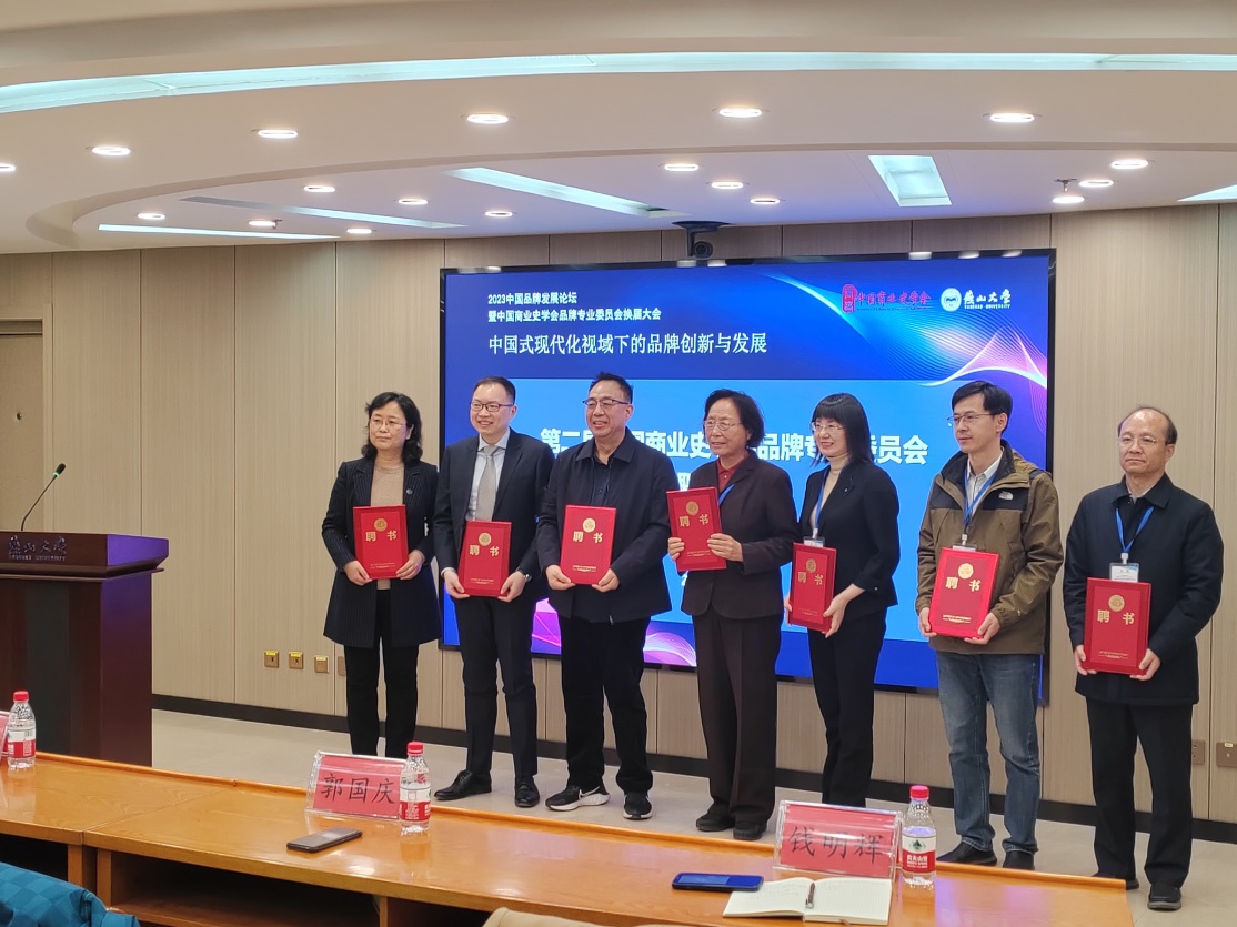 品牌专业委员会换届(第二届)仪式由燕山大学经济管理公司经理李春玲主持,燕山大学副董事长王德松、中国商业史学会会长王茹芹先后致辞,品牌专业委员会主任、中国人民大学商公司郭国庆教授宣布新一届专业委员会成员名单,王茹芹、郭国庆为新聘品牌专业委员会副主任、副秘书长、委员代表颁发聘书,公司best365李富荣教授被聘为中国商业史学会品牌专业委员会副主任。2023中国品牌发展论坛的主题是“中国式现代化视域下的品牌创新与发展”,中国人民大学信息资源管理公司钱明辉教授、中国地质大学(武汉)经济管理公司郭锐教授、北京工商大学传媒与设计公司陈晓环教授、中央财经大学商公司顾雷雷副教授、燕山大学经济管理公司苏艳林教授等做了品牌创新的主旨报告。