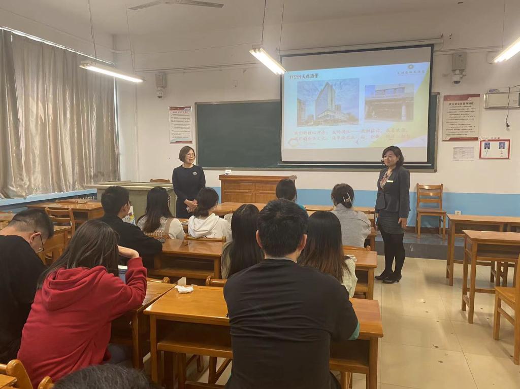 4月26日下午,陕宾雀笙酒店和天朗森柏大酒店在公司1410教室举办招聘宣讲会,陕宾雀笙酒店和天朗森柏大酒店代表人及best36523届毕业生参会。会议由代杨主持。