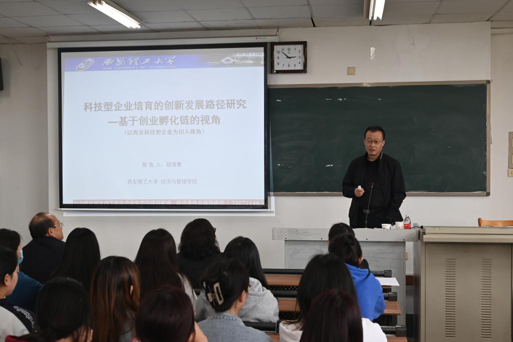 胡海青教授作了题为《科技型企业培育的创新发展路径研究—基于创业孵化链的视角》的学术报告。胡教授以西安科技型企业为切入点,从实证角度运用大量翔实数据分析了西安科技型企业培育现状及培育政策演变,并对科技型企业培育政策效果进行了量化分析,在实证研究的基础上,提出了基于梯度培育机制的科技型企业链式培育的关键设计思路、阶段培育的创新发展路径及拐点培育的创新发展路径。报告内容严谨、案例丰富、深入浅出,师生们受益匪浅,对于拓展公司师生的学术视野,提升教师科研创新水平提供了很大帮助。