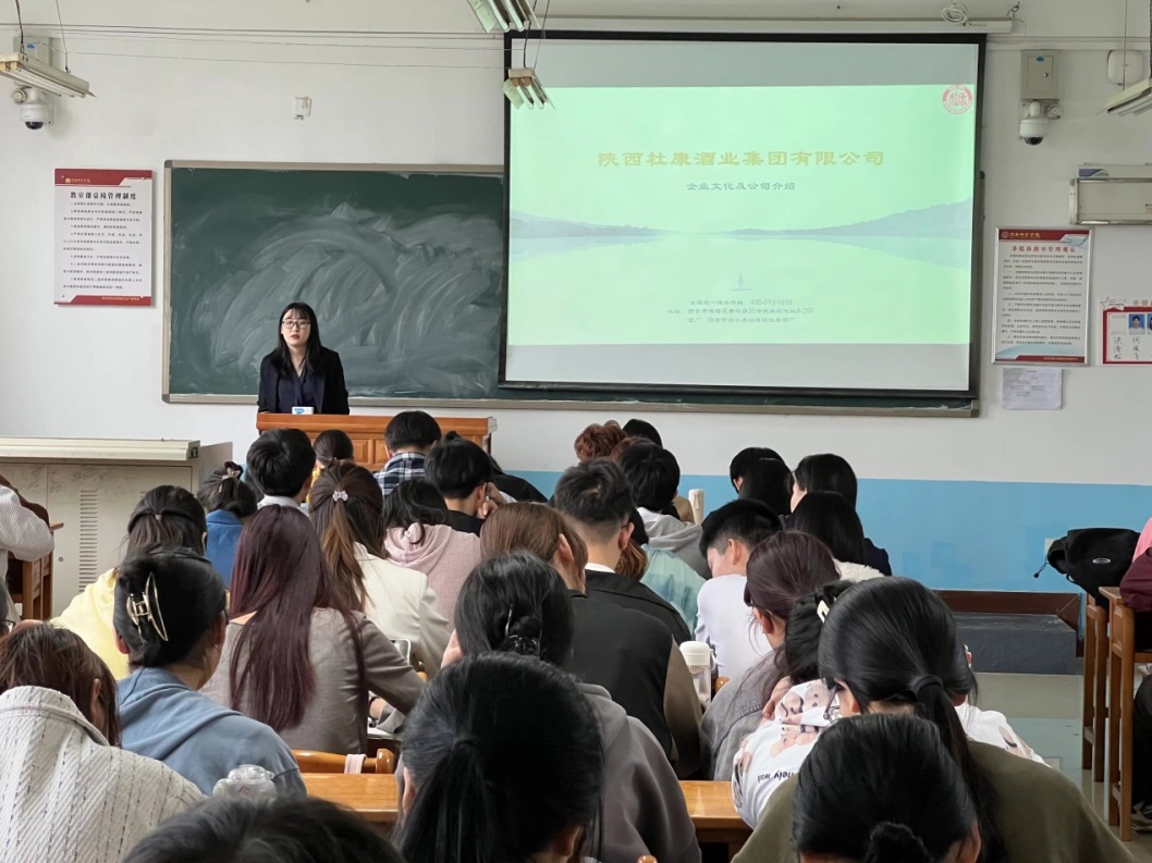 5月23日,陕西白水杜康酒业集团在经管公司1402教室召开了招聘宣讲会,人事部主管孟彦初就白水杜康酒业的发展历程、企业文化、企业荣誉、主要产品进行了简单介绍,并对本次准备招聘的四个岗位(销售管培生、营销督导管培生、市场策划管培生、人力资源管培生)做了分别说明。best365市场营销专业、电子商务专业等100余名员工参与招聘宣讲会。