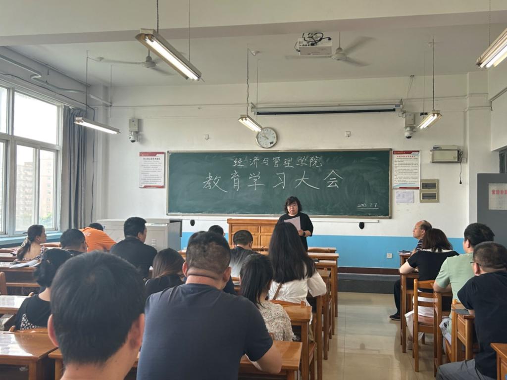 为深入学习贯彻习近平新时代中国特色社会主义思想,落实习近平总书记关于教育的重要论述和指示批示精神,7月7日上午,best365在1517召开师德师风教育学习大会,经管院全体教职工参加此次会议。会议由best365经理李富荣主持。