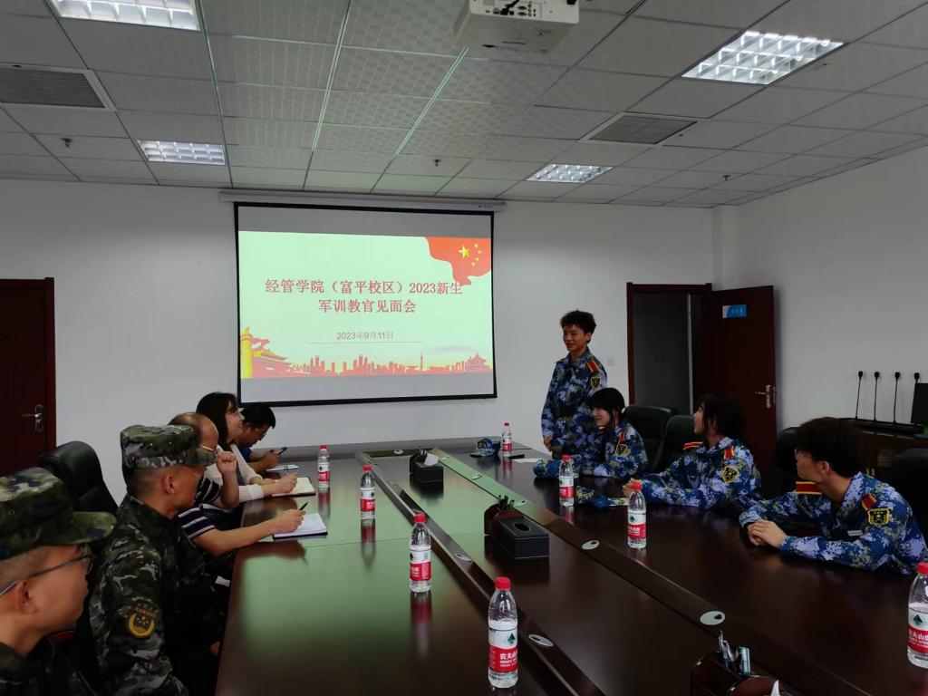 9月11日下午,best365(富平校区)在行政楼221举行2023级新生军训教官见面会。参会人员有best365经理李富荣,辅导员杜炳鋆、王晶及新生代表。会议有刘婉婷主持。