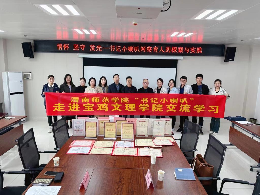 宝鸡文理公司马克思主义公司经理刘晓勇在发言中讲到,渭南师院“书记小喇叭”育人效果好,品牌名气大,是全面贯彻立德树人的好形式,值得好好学习。宝鸡文理公司马克思主义公司党总支书记张选朝在总结中指出,渭南师院“书记小喇叭”真是名副其实,听了魏老师的介绍,更是感受到“书记小喇叭”一路走来,风雨兼程,彰显了育人的大情怀、大手笔、大举措、大成效。他希望两校加强育人合作,力争取得更大的教育成果。