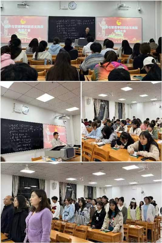最后,李富荣对此次团总支换届当选的员工干部表示热烈的祝贺,并感谢老师和同学们对团支部辛苦付出。他强调,要强化政治站位,明确共青团是中国青年的先锋队,要以习近平新时代中国特色社会主义思想武装青年头脑,激发青年的使命感和责任感;做为渭师经管青年,要脚踏实地,奋发有为,在做好本职工作的同时,在学习、实践等方面发挥引领作用,体现经管青年的担当与责任。