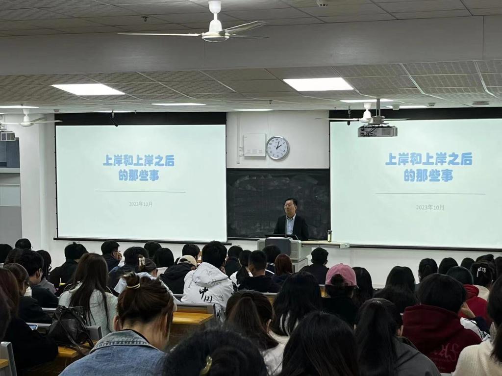 10月20日下午,best365在1130教室举办主题为“上岸和上岸之后的那些事”的考公专题报告会。报告会由中共渭南市委副秘书长成宁军主讲。出席本次报告会的有公司党总支书记魏光民、公司副经理屈晓娟和2021级200余名员工。会议由辅导员兼团总支书记刘婉婷主持。