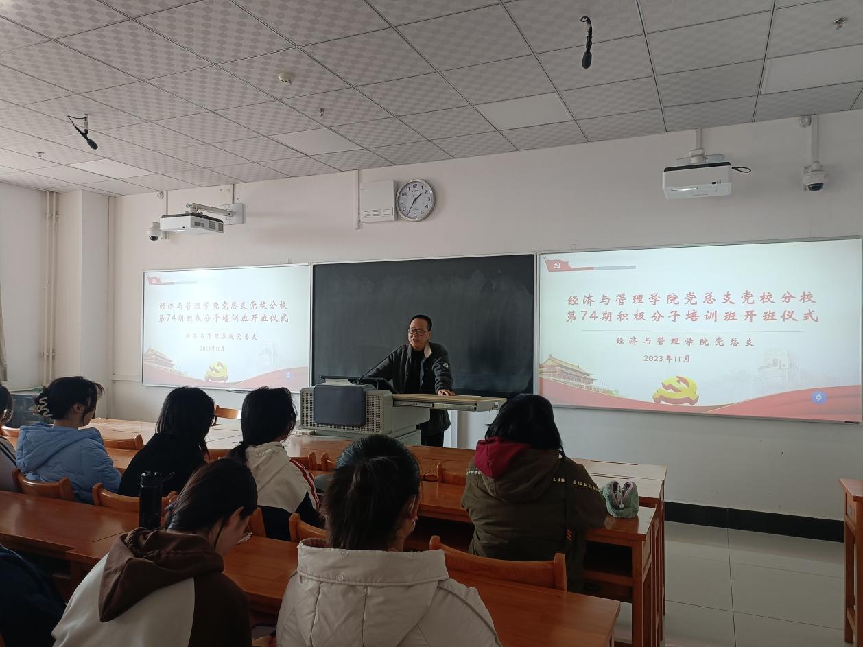 11月14日下午,公司党总支在富平校区1121教室举行第74期入党积极分子培训班开班仪式。公司党总支书记魏光民、员工党支部书记刘婉婷、辅导员王晶以及本期34名入党积极分子参加了开班仪式,会议由刘婉婷主持。
