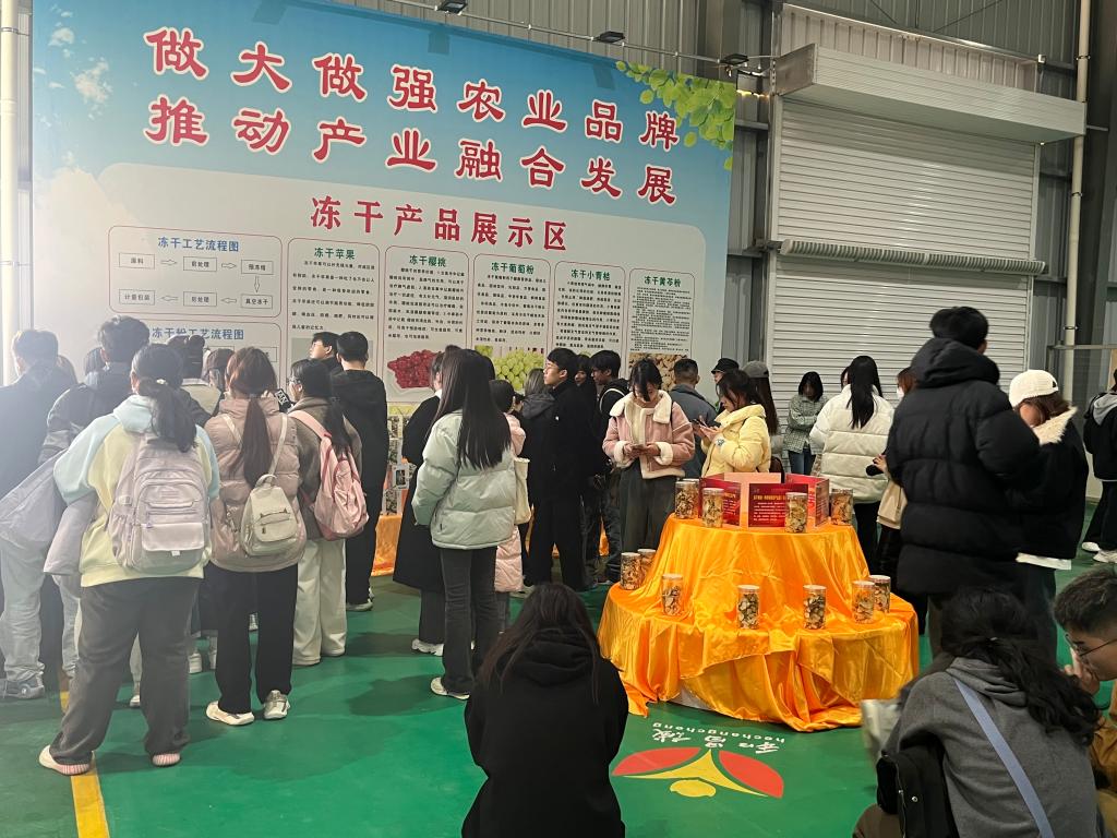 陕西和昌诚农业发展有限公司总经理吴亚锋,热情接待了来调研的三个公司的师生。吴亚锋向前来调研的师生介绍了公司发展历程、发展目标、业务范围和特色产品等,围绕企业的创业历程,分享了企业成功的经验和面临的问题;在吴亚锋的带领下,师生深入企业生产一线,参观了公司冻干果产品的生产加工过程;同时,吴亚锋向与公司教师就校企合作及本次农产品营销策划与产品包装设计方案征集大赛具体事宜进行了进一步的沟通。