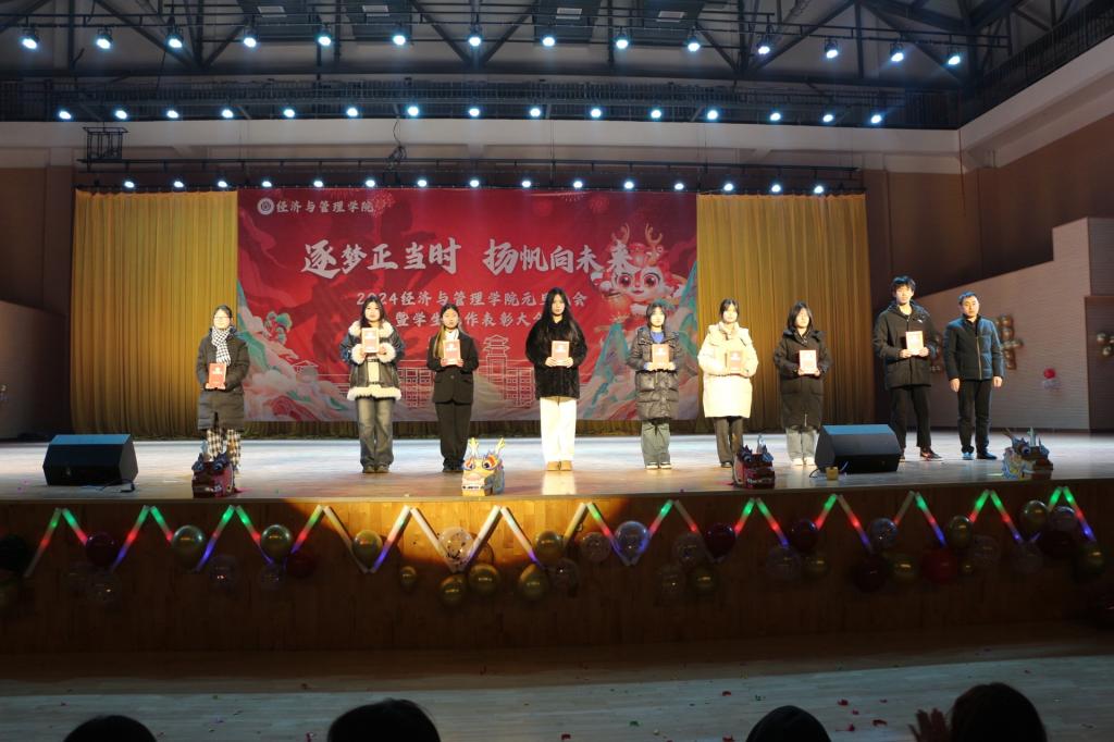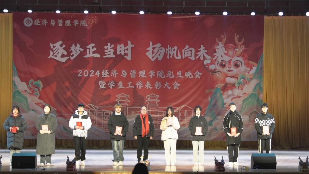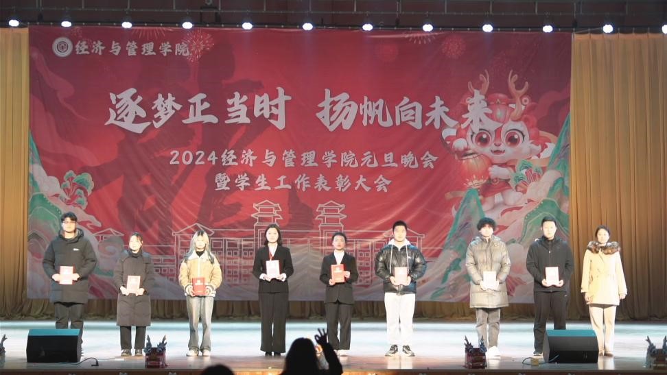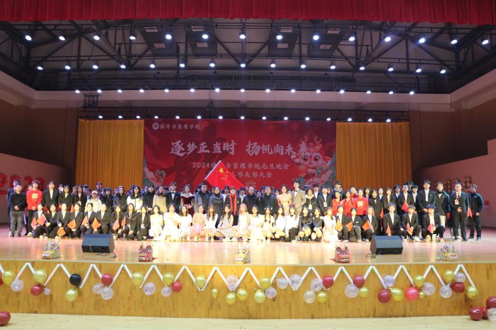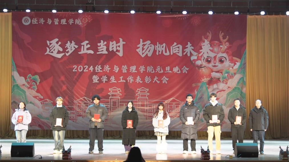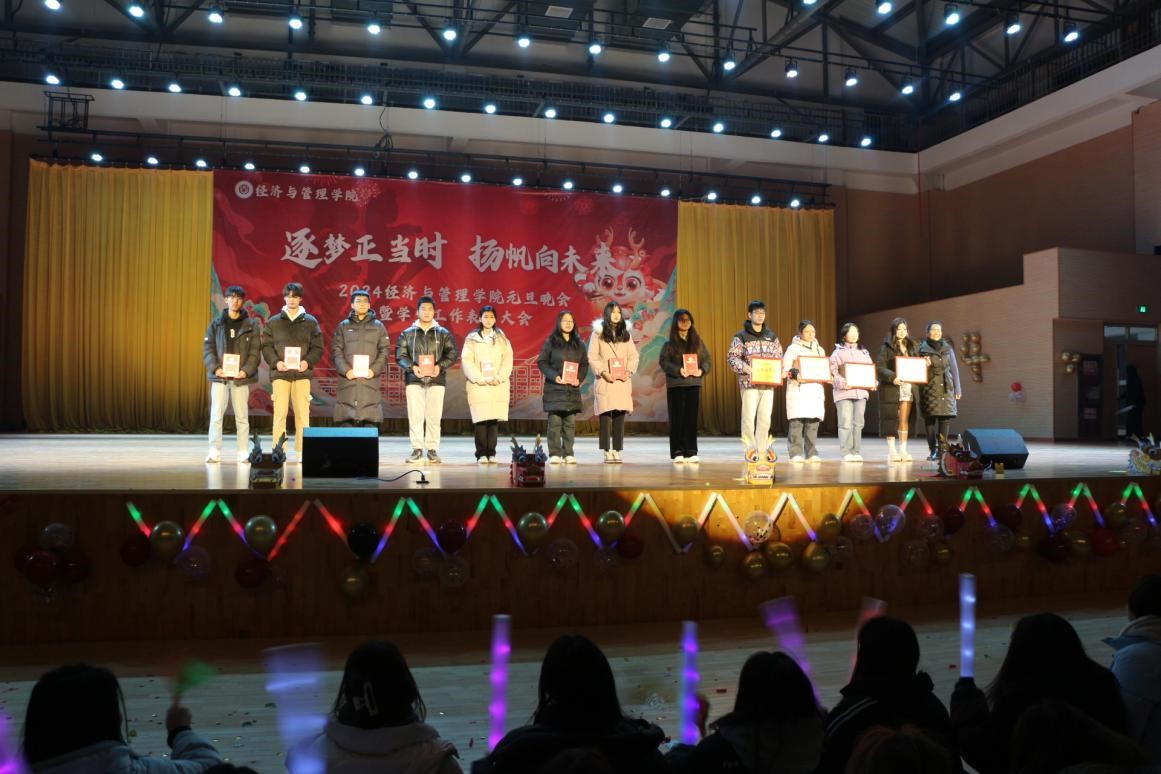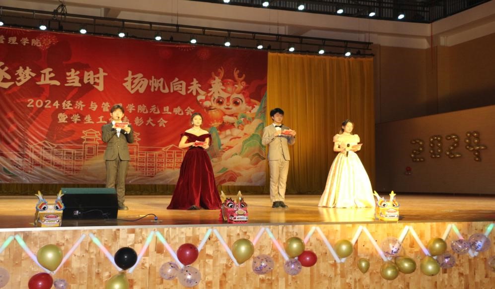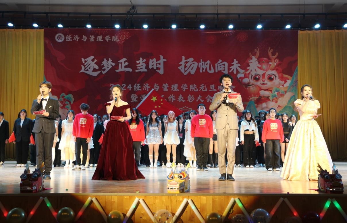 斗转星移辞旧岁,东风送暖迎新年。为喜迎元旦佳节,丰富师生校园文化生活,best365于12月21日晚七点在富平校区体育馆举办2024年元旦晚会暨员工工作表彰大会。本次晚会主题为“逐梦正当时,扬帆向未来”。渭南师范公司党委宣传部副部长朱芳转、美术公司党总支书记陈进卫、传媒公司党总支书记田康顺、公司党总支书记魏光民、 经理李富荣、党总支副书记谢稷光、副经理王留鑫,以及经管公司近八百名同学们参加了此次晚会。