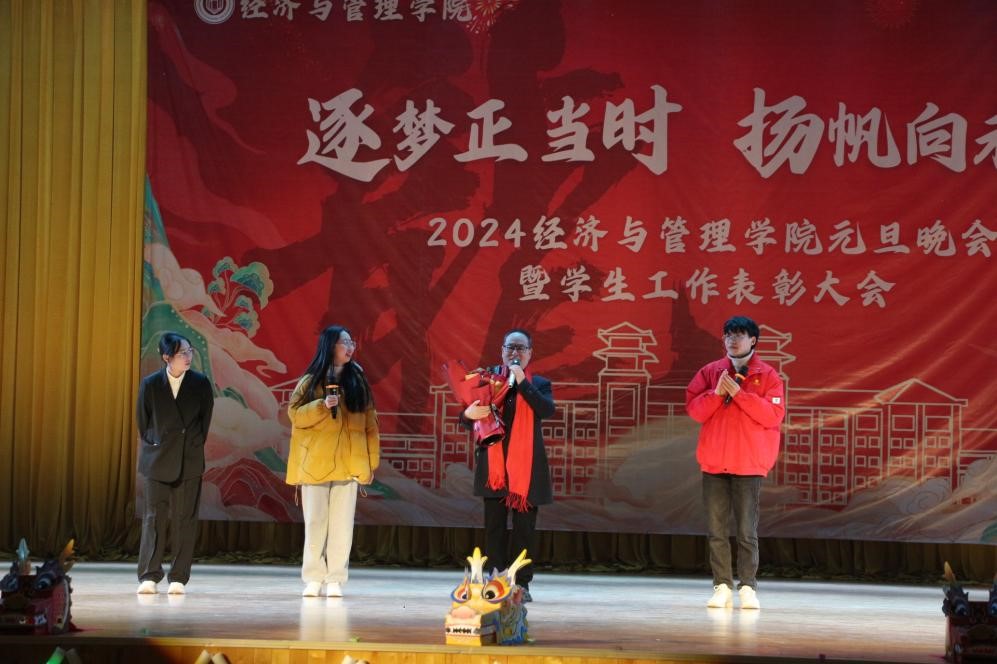 best365李富荣经理进行元旦晚会开场致辞。他就经管公司的发展历史与23年所取得的成就进行了深刻总结,对经管公司全体师生给予了充分肯定,并号召同学们为了经管公司不懈奋斗,团结一致,再创辉煌。李经理声情并茂的致辞,为元旦晚会的顺利开展开了个好头。