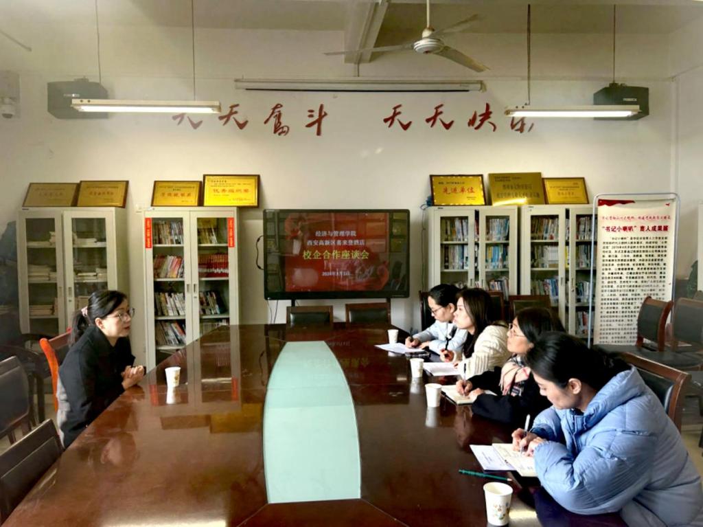 座谈会上,副经理石党英对西安高新区喜来登酒店一行来访公司表示热烈欢迎。西安高新区喜来登酒店人力资源总监皱利锐详细介绍了西安高新区喜来登酒店发展情况,从发展优势、企业文化、公司结构、薪资构成和未来发展等情况,立足企业实际提出人才需求,并对未来校企合作的模式进行介绍。石党英从专业设置和团队情况、人才培养特色等方面详细介绍经管院的情况,并希望与西安喜来登酒店加强校企合作,推进相关专业校企合作课程开发,专业见习、实训和实习,促进员工就业。双方达成校企合作初步合作共识。双方都希望通过深入地校企合作共赢发展。