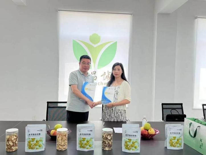 在陕西和昌诚农业发展有限公司,肖耀刚一行与企业深入座谈,查看了前期公司员工为该公司设计的产品包装和营销计划。公司董事长吴亚锋介绍了前期和公司合作所取得的丰硕成果,对公司员工的专业素养和业务能力给予高度评价,希望校企双方能继续深入合作。肖耀刚表示,与该公司的合作是公司服务地方经济社会发展的典范,校企双方充分利用各自优势实现了员工成长和企业发展的双赢。双方要持续加强沟通交流,拓宽合作领域,找准合作切入点,使双方合作之花持续绽放。随后,双方签订了共建老员工就业基地协议和实践教学基地共建协议并进行了挂牌。