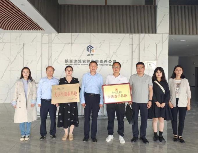 陕西沐梵农林有限责任公司总经理高峰对肖耀刚一行表示欢迎。详细介绍了企业的运营情况、业务范围、用人需求以及发展前景等。肖耀刚介绍了公司总体情况和此行目的,双方就毕业生就业、实习实训、科研项目合作等方面进行了深入交流并达成了合作意向,签订了共建老员工就业基地协议和实践教学基地共建协议,并对基地进行了挂牌。