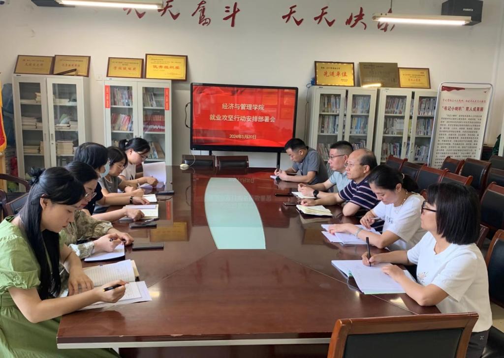 5月20日早上,经济与管理公司在1518会议室召开就业攻坚行动安排部署会。班子主要成员和全体毕业班辅导员参加了此次会议,会议由党总支书记李富荣主持。
