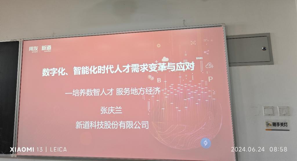 6月24日,best365邀请新道科技产品服务经理张庆兰在富平校区1116教室分别为财管、会计21级员工和财管、会计22级员工作了《数字化、智能化时代人才需求变革与应对》主题报告。200余员工聆听了本场报告会,报告会由经管公司副教授孙碧荣主持。