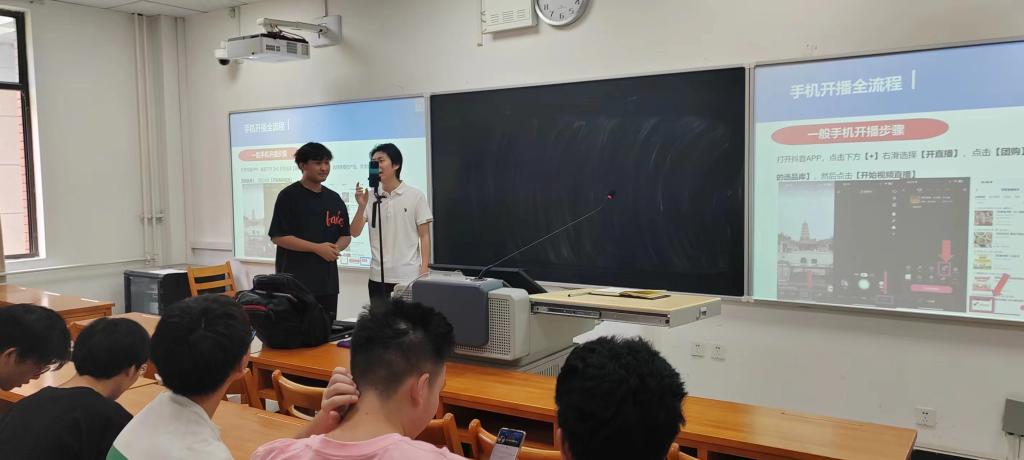 在讲座过程中针对直播行业发展动态、直播达人的整个流程与运行机制对员工倾囊相授,表达风趣幽默,讲座气氛热烈,深受员工好评。报告中讲解了短视频达人,直播达人的培训,详细介绍了如何成为达人,如何有效进行直播,达人与MCN机构的合作模式及资源,以及怎样去进行账号的经营,教同学们拍摄直播与脚本话术等技巧,以及话术中坑点规避。每一位同学都认真地听取了老师的讲解,并做了相关笔记,为更好的学习直播及脚本整体策划打下了良好的基础。其中几位同学现场进行了直播体验。最后为大家讲解了直播设备如何使用,直播过程中需要注意的基本事项。