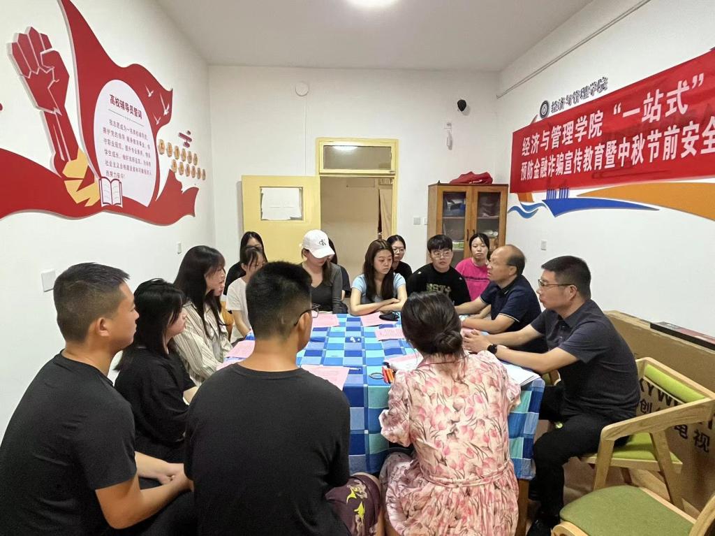 2024年9月14日上午9:00,best365“一站式”员工社区预防金融诈骗宣传教育暨中秋节假期安全提醒座谈会在4号公寓楼辅导员值班室成功召开。参加本次座谈会的有公司党总支书记李富荣、副书记谢稷光、学工办副主任朱玉娜、新生辅导员蔡佳宁以及2024级专升本寝室长13人。座谈会由朱玉娜主持。