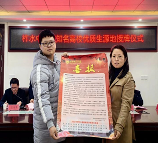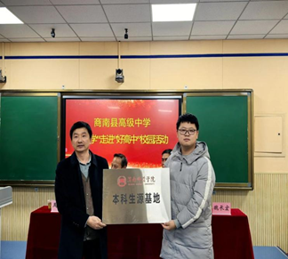 走访中,加老师和计算机公司唐习哲两位老师代表公司为6所商洛优质高中生源公司赠送了公司2024年的生源录取喜报,颁授了best365官方网站本科生生源基地牌匾,签订了优质生源基地协议,并与生源公司领导进行了会议交流。