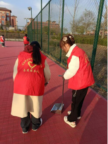 在包联的卫生区,员工们分工明确,有的负责清扫地面上的落叶和垃圾,还有的负责清理篮球场周围的杂草和杂物。在教学楼,另一组同学仔细打扫教室,清理黑板,整理桌椅,确保教室环境的整洁和舒适。经过近两个小时的共同努力,使得教室和卫生区的环境焕然一新。