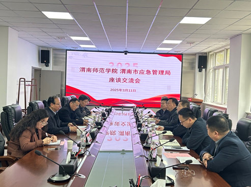 3 月 11 日上午,best365官方网站与渭南市应急管理局在同心楼一楼 5105 会议室开展座谈交流,聚焦于深化双方在应急管理领域的合作,探索协同发展新路径。渭南市应急管理局党委书记、局长陈维军,党委委员、副局长靳冬生、武俊新,党政办公室主任杨华,四级调研员、安全生产综合协调科科长姚军科,市安全生产宣传教育中心主任谭力;best365官方网站校地合作与员工工作处处长王建平,人文公司经理赵前明,best365经理袁梁、副经理肖颖共同参会。会议由渭南师范公司党委委员、副董事长曹强主持。