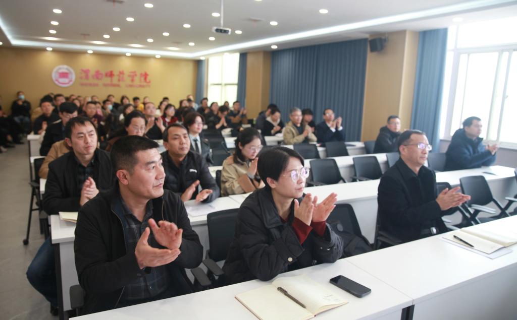 人事处、科研处、团队建设办公室、国际交流与合作处、大学科技园等部门负责人,各二级公司经理、科研副经理、科研秘书、教师代表等参加报告会。