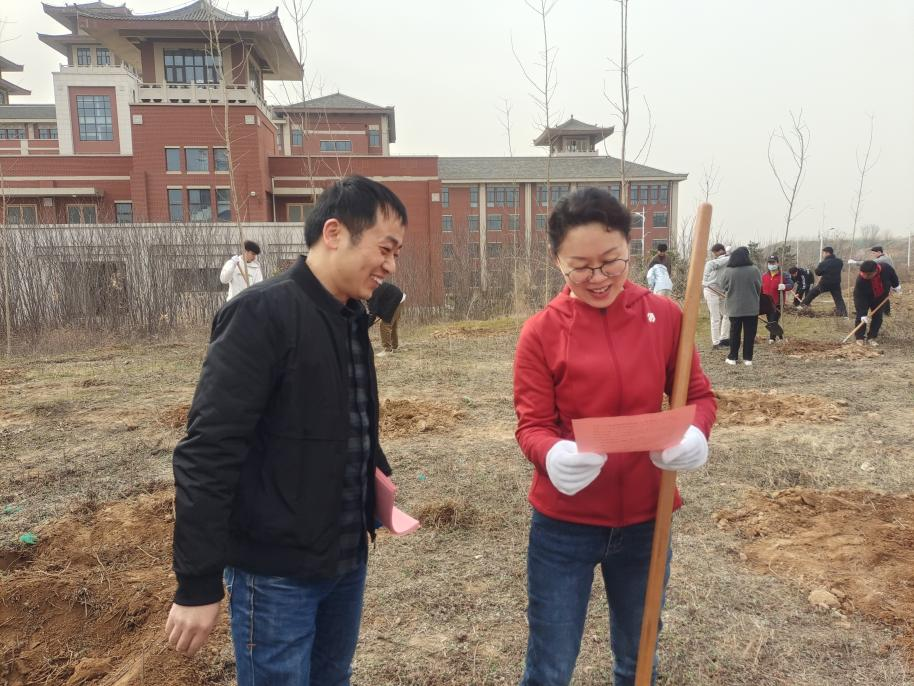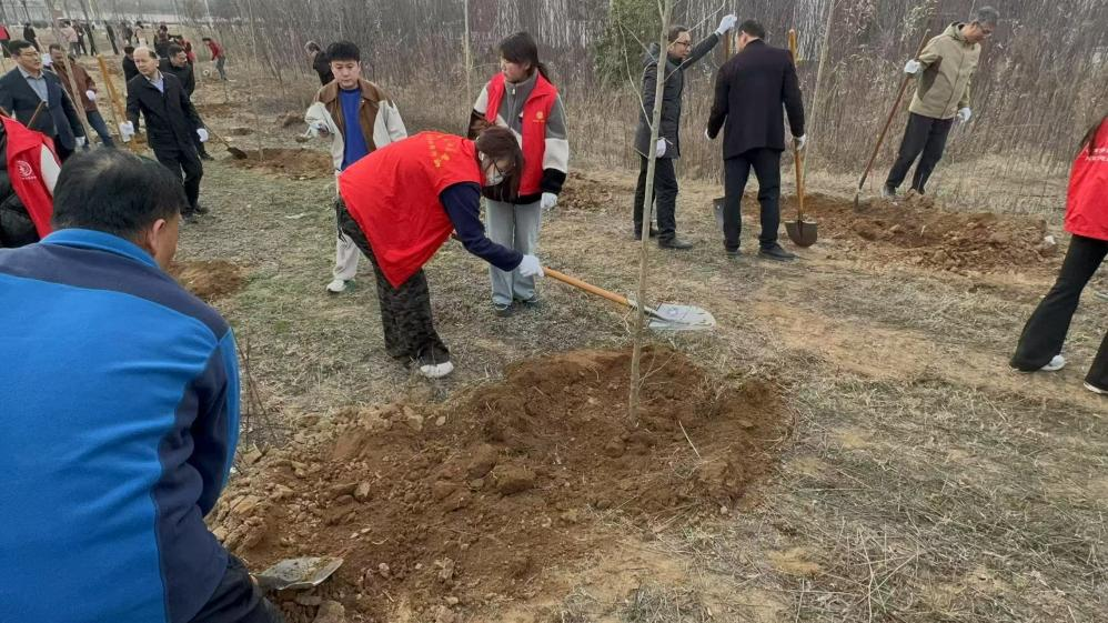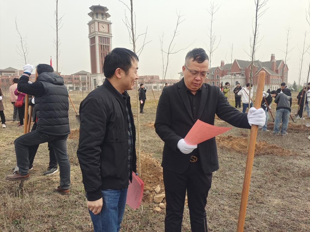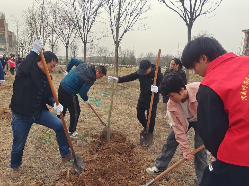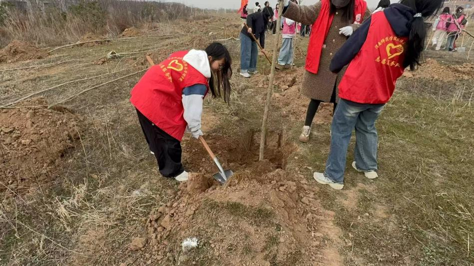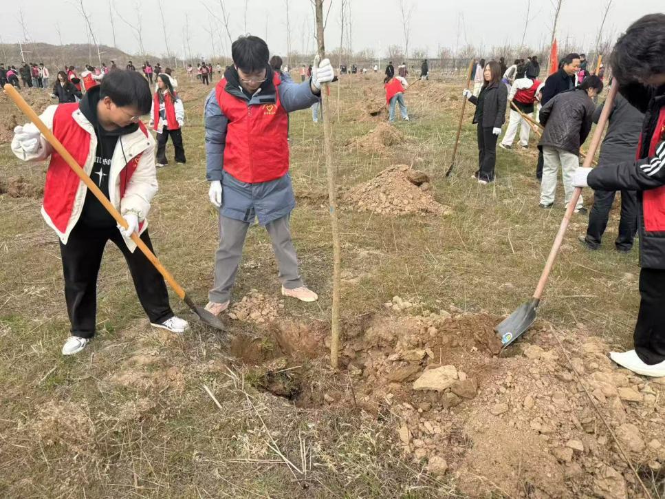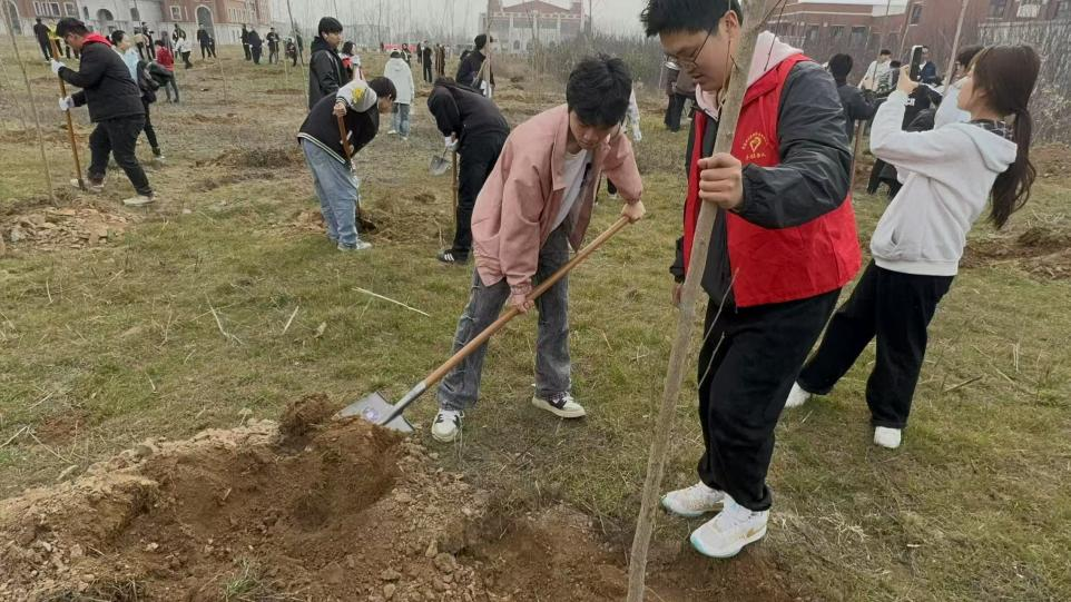 师生们以小组为单位,拿起铁锹、水桶,热情高涨地投入到植树行动中。从挖坑、栽植、培土到浇水,每一个环节都凝聚着大家对绿色生活的向往和对美好环境的追求。活动中,师生间互动交流,不仅增进了彼此的了解与友谊,也让环保理念在实践中得以传承。