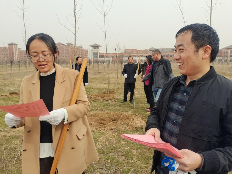 在植树过程中,王留鑫给在场的师生分发植树节科普宣传册。他手持一沓沓精美的宣传册,耐心讲解植树造林的重要性以及环保知识,鼓励大家从身边小事做起,积极参与生态文明建设。宣传册内容详实、图文并茂,让师生们在轻松愉快的氛围中收获了宝贵的知识。