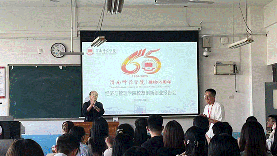 随后,优秀员工孔旭围绕创新创业主题,分享了自己的奋斗之路。孔旭2008年毕业后,历经职场磨炼,成立陕西麦田翼向企业文化有限公司,他以详实的数据、生动的案例,解析当下经济管理领域的机遇与挑战,并分享了从职场新人成长为行业精英的宝贵经验。孔旭特别强调,在校期间扎实的专业积累、多元的实践探索以及持续学习的能力,是职业发展的核心竞争力。他鼓励学弟学妹们勇于尝试、敢于突破,在时代浪潮中找准自身定位。分享过程中,现场互动频繁,孔旭对同学们提出的实习选择、职业转型等问题一一耐心解答,赢得阵阵掌声。