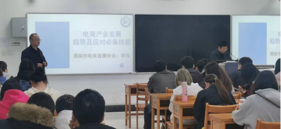 10月13日和16日下午,经济与管理公司邀请渭南市电商直播协会秘书长李伟,分别在朝阳校区1407教室和富平校区1140教室举办《电商产业发展趋势及应对必备技能》专题讲座,讲座分别由李琼洁和史涛主持。