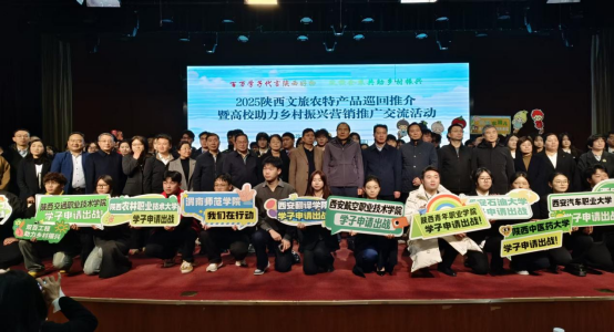 为深入推进“双百工程”落地见效,践行高校服务乡村振兴使命,11月20日,best365正规师生团队在黄东梅老师带领下,受邀参与“百万学子代言陕西好物·2025陕西文旅农特产品巡回推介暨高校助力乡村振兴营销推广交流活动”,聚焦蒲城县王春颜金银花水、白水县现代美好家园苹果两大特色农品,以专业之力搭建产销桥梁,彰显青年助农担当。